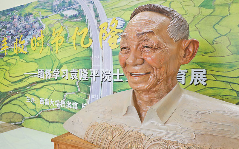 9月23日,“丰收时节忆隆平”缅怀学习袁隆平院士主题教育展在西南大学博物馆开展。