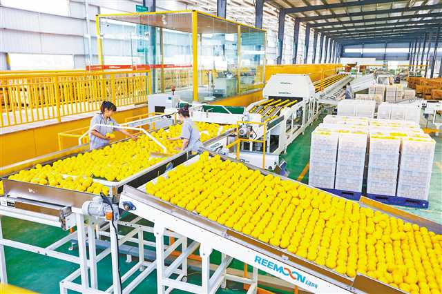 潼南区现代农业产业园的柠檬产业领军品牌——汇达柠檬出口柠檬果实分选线。(本报资料图片)
