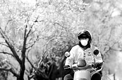辽宁省沈阳市浑南大桥上,一名外卖员在配送外卖订单。新华社发