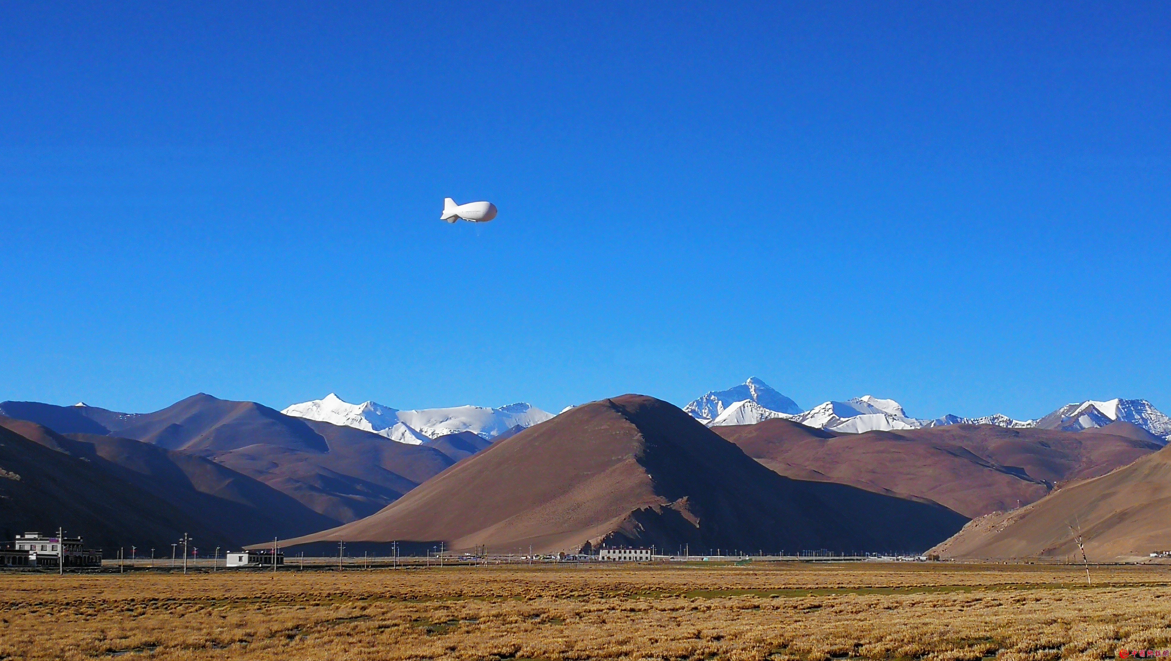 珠穆朗玛峰和洛子峰前的极目一号III型浮空艇。中国科学院供图