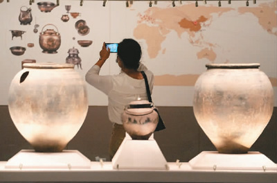 图为游客在参观“大唐遗宝——何家村窖藏出土文物展”。(新华社记者 李一博摄) 来源:人民网-人民日报海外版