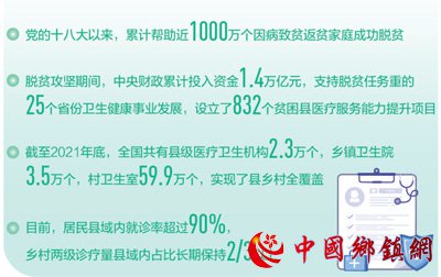 一是全面消除乡村医疗卫生机构和人员“空白点”,基本实现农村群众公平享有基本医疗卫生服务。明确基本医疗有保障目标标准,历史性解决了部分地区的基层缺机构、缺医生问题,实现农村群众有地方看病、有医生看病,常见病、慢性病基本能够就近获得及时治疗。