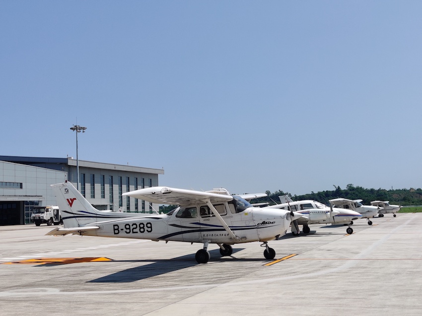 位于贡井区的自贡航空产业园凤鸣通用机场,1200米跑道舒展向前,一架架通用飞机腾空而起。机场向西,另一座拥有2500米跑道的兰田机场已建成投用。