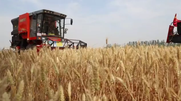 在山东曹县,伴随着机械轰鸣声,小麦迎来开镰收割。今年当地小麦种植面积为154.43万亩,预计整个收割工作将在6月底完成。