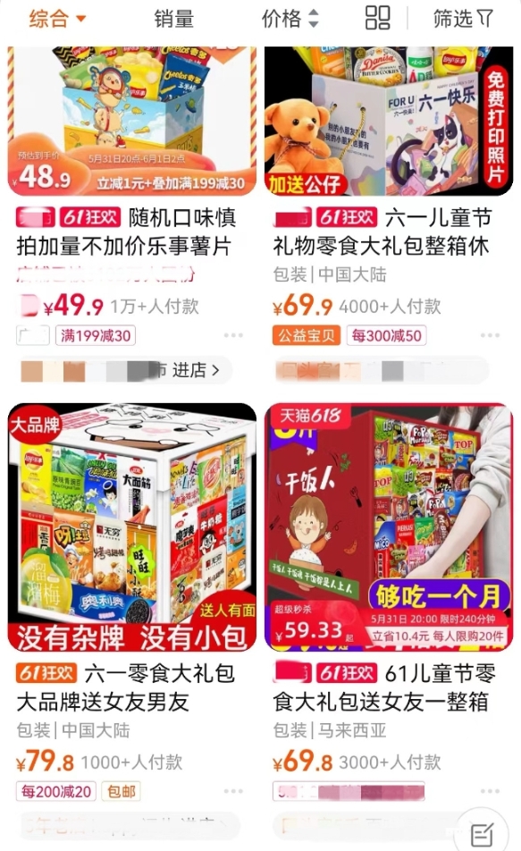 在电商平台,也有不少商家推出“六一”零食大礼包。据商家介绍,购物还能送浪漫玫瑰花、代写心意贺卡等,“六一”儿童节礼物俨然变成了“情人节”礼物。一些玩具类商品也被商家包装好,打上了“六一”儿童节送闺蜜、送女友的“标签”。