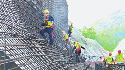 国庆节期间,在向家坝灌区北总干渠一期一步工程—大地湾渡槽项目施工点,工人正加紧对渡槽进行钢筋绑扎施工。 向家坝灌区公司供图