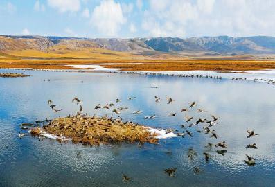 雪后阳光下,数千只飞禽在若尔盖花湖嬉戏翱翔。 四川日报全媒体记者 尹钢 摄(资料图片)