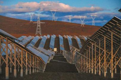 10月27日,清晨的第一缕阳光照射在甘孜州乡城县正斗乡顶贡大草原上。100多万块光伏板在这片海拔4000米的高原上依山势逐光而列,连绵起伏,远远望去像极了蓝色海洋。