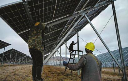 为了打造光伏行业的“百科全书”,除已投产的首批发电单元外,基地内还有上千名建设者克服高寒低温环境带来的困难,正在对各种设备进行安装调试。