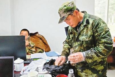 2月10日,宝兴县蜂桶寨中心管护站的巡护员正在处理大熊猫粪便。四川日报全媒体记者 卢春阳 摄