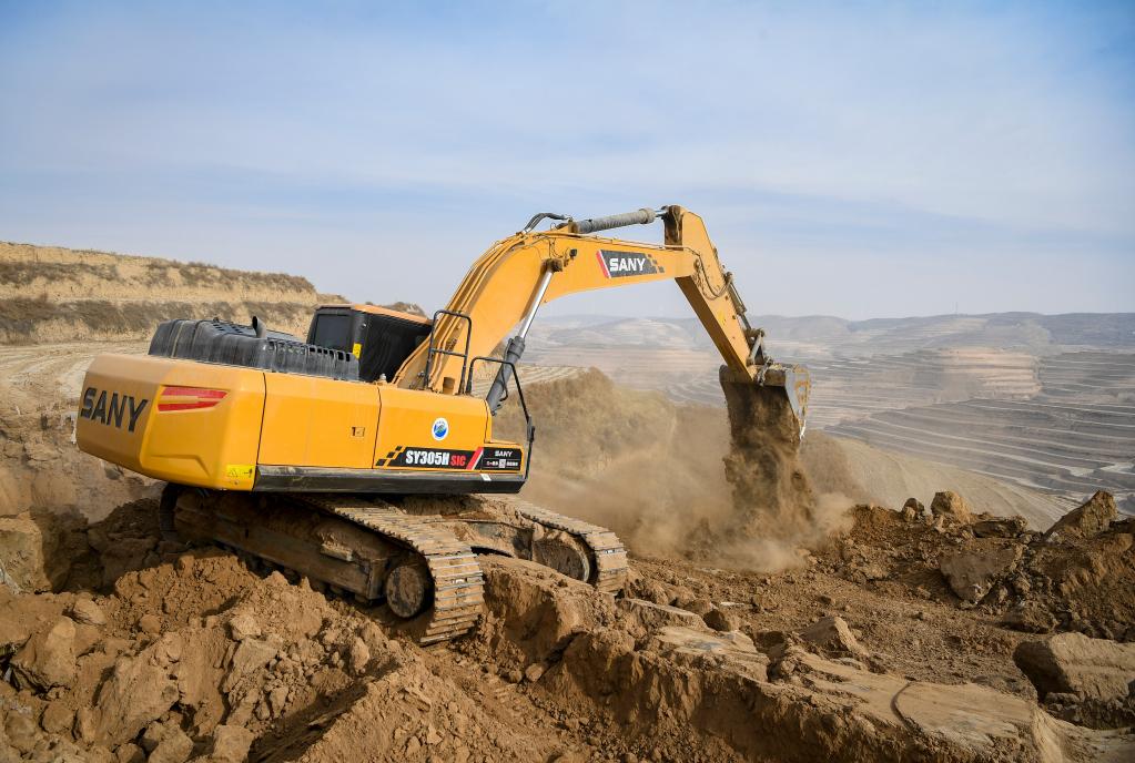 工人操作挖掘机在宁夏固原市西吉县硝河乡苏沟村平整土地。新华社记者冯开华 摄