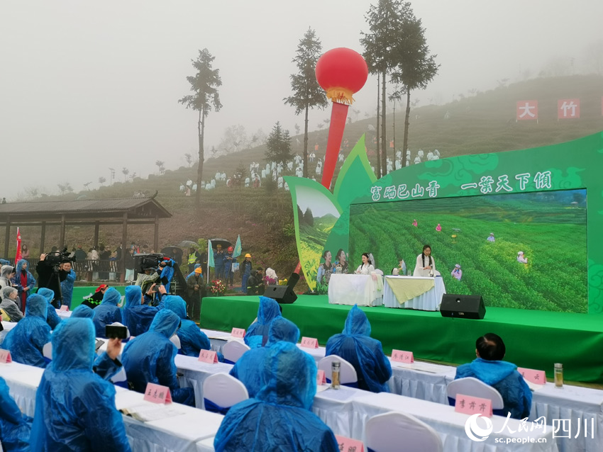 一朝睡起春芽绿,正是茶香四溢时。清明前一周,大竹县第七届“喊山开茶”文化节隆重开启。一场“明前茶”的精彩亮相,让春雨中的人们充满惊喜。3月25日上午9点半,在铜锣山腹地的四川省达州市大竹县团坝镇白茶基地,空中彩带飘动,人们笑语盈盈。伴随着一声声“开茶啰”的悠长呐喊,沉睡一冬的茶山撩开薄如轻纱的晨雾,显露出苍翠欲滴的姣容。