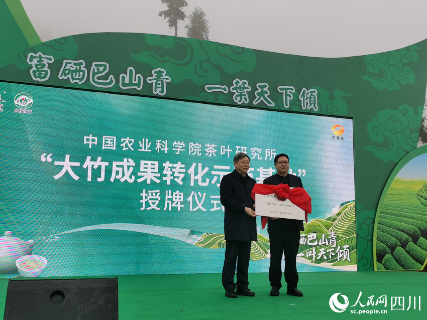 今年是大竹第七次开展“喊山开茶”活动,迎来了新的气象。作为达州市首届“巴山青”茶文化节的重要组成部分,今年的大竹县“喊山开茶”文化节收获了中国农业科学院茶叶研究所的认可和青睐。在仪式上,中国农科院茶叶研究所江用文书记为“中国农业科学院茶叶研究所大竹成果转化示范基地”进行了授牌。这标志着大竹县白茶产业在通向“产学研一体化”的道路上迈出了关键一步,向着巴山白茶全产业链发展的目标努力奋进。