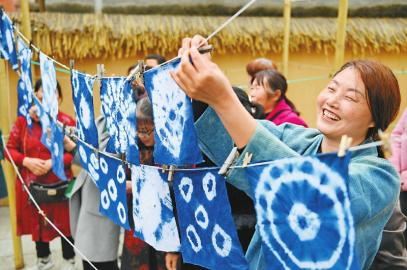 3月25日,春日的阳光洒在成都市双流区彭镇鲢鱼社区“吴家染坊”的晒场上,宽大的扎染布匹随风轻摆,淡蓝色的晕纹变幻玄妙。近年来,这个普通的农村集中安置新小区重塑百年染坊文化,“染”出一幅乡村振兴新画卷。