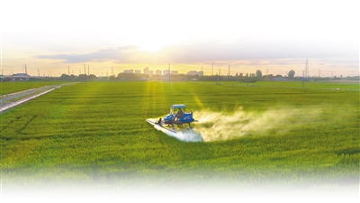 昆山市农户利用高地隙植保机开展水稻绿色防控。 |
