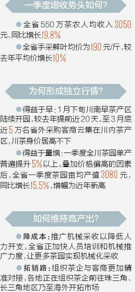 “上市早,价格就好;产量大,产值就高。”面对川茶在一季度交出的优异考卷,农业农村厅首席茶艺师段新友这样分析。