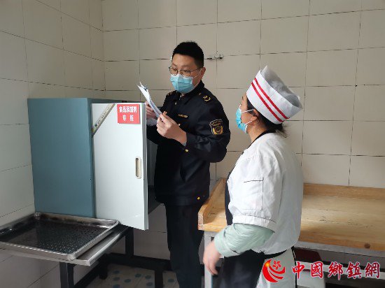 图为胡用军正在学校食堂开展食品安全检查(受访者供图)