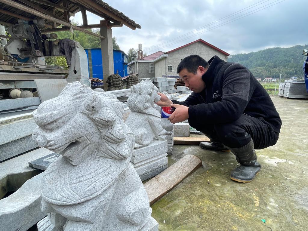 潭湾村石雕艺人在工作。新华社记者苏晓洲 摄