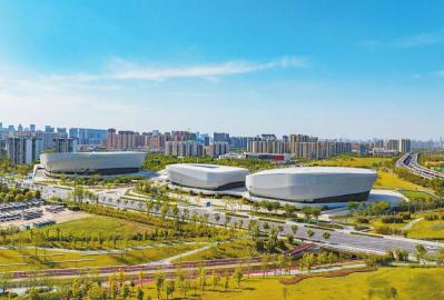 成都高新体育中心,成都大运会乒乓球项目的比赛将在这里举行。其设计灵感来源于蜀锦,遵循“韵动丝路、绿绣锦城”的设计理念。