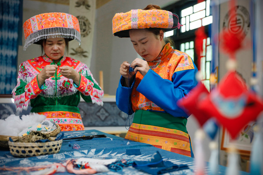 这两天,在四川省古蔺县箭竹苗族乡,苗家阿姐们正在一起忙碌着包粽子、缝制蜡染“粽子香囊”。