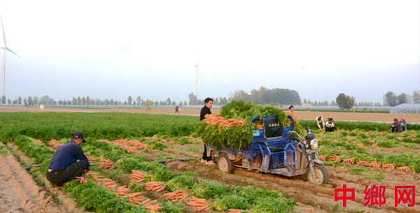 11月5日,河南省内黄县马上乡小黄滩村张俊正在萝卜种植基地组织钟点工拔胡萝卜、捆胡萝卜和给胡萝卜装车。近年来,该乡党委坚持党建为引领,创新探索“党支部+合作社+农户”的发展模式,推动大棚蔬菜瓜果和露地蔬菜产业向规模化、标准化、品牌化方向发展。当地通过引进甜瓜、黄瓜、西红柿等抗病性强、高产、优质的蔬菜新品种,同时大力推广套水肥一体化系统以及绿色生态种植模式,实现节本、增效、提质显著提升了蔬菜的产量和品质。让“内黄马上蔬菜”逐渐成为一张闪亮的名片。“近年来,马上乡大力推广温室大棚瓜菜和露地蔬菜种植,把高效农业作为经济发展主导产业来抓,以产业兴带动农民富。目前,全乡温室大棚瓜菜种植面积和露地蔬菜种植面积5万余亩,瓜果种植专业合作社达48家,年产各类瓜菜24万吨,年创效益5亿元。助力乡村振兴。”马上乡党委书记魏坤自豪地说。(图文来源:河南省内黄县县委组织部办公室 翟书生王军艳)