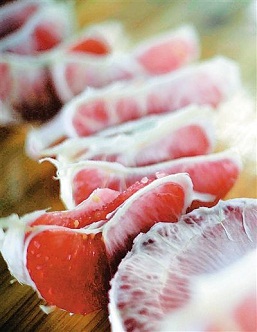 当剖开红心蜜柚那金黄色的薄薄的外皮,就会看到淡红色的片片瓤瓣,瓤瓣色泽鲜艳、十分诱人。翻开瓤瓣,瓤肉无籽,粒粒菱形的沙瓤晶莹剔透,赏心悦目,入口一尝,脆嫩无渣,柔软多汁,清甜微酸,味道永携,不仅具备白肉蜜柚的营养成分,而且红肉蜜柚所含的天然色素对人体具有一定的保健作用。据了解,儋州蜜柚浑身都是宝:柚肉鲜食甘酸适口、柚花可入药,但鲜为人知的是儋州柚皮也可以食用,它不仅营养丰富,还具有暖胃、化痰、润喉等功效。