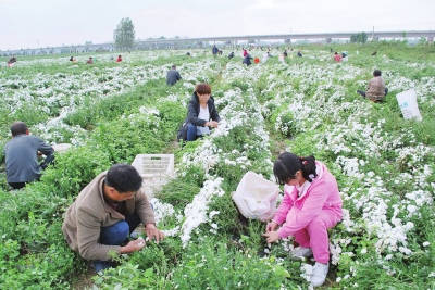 “平时菊花地里,也有数十个农民,而采摘旺季,每天前来采摘菊花的就有300多人。按照采摘1市斤菊花0.5元计算,农民们每天可挣到100元至200元。”张洪举说。