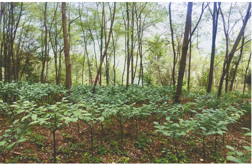 此外,魔芋的软腐病、白绢病无法根治,也是制约魔芋产业发展的一大症结。为减少病害,目前我省魔芋栽培主要有大田套种和林下栽培两种模式。大田套种模式采用玉米与魔芋套种、果树与魔芋套种,不但可以利用高秆玉米和果树为下层魔芋起到荫蔽作用,降低土温,同时还能减少或减轻魔芋病虫害的发生,实现高产效果。