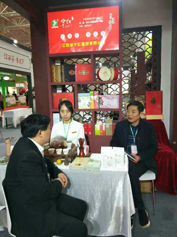 展会上茶叶展区格外引人注目。九江市农业局经作站长张玲芳说:“庐山云雾茶早已名闻遐迩,我们这次来参展的彭泽县大岷山生态农林有限公司就是一家非常优秀的企业,不但茶叶品质好,市场销售也很好,这次展会上也是门庭若市”。在九江修水宁红集团的展位前,记者看到也是熙熙攘攘的购买人流。素不相识的“林恩茶”市场部经理朱军华,见记者在茶展区观望,便热情地邀请记者去“林恩”喝茶,端起小巧别致的玻璃广告茶杯,喝着韵味悠长、汤色清醇的红杜鹃茶,顿感一上午的疲乏消失无遗。一亩茶园江西区经理陈小虎一见记者就后悔不迭:“没想到广东市场这么好,后悔带少了茶叶,不一会儿,几箱茶叶就销售一空”。