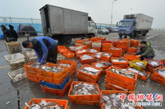 12月15日,渔民在青岛沙子口中心渔港码头卸载渔获。进入冬捕时节,山东青岛沙子口中心渔港一片繁忙景象,渔民们忙着将渔获装卸、分发,供应各地市场。