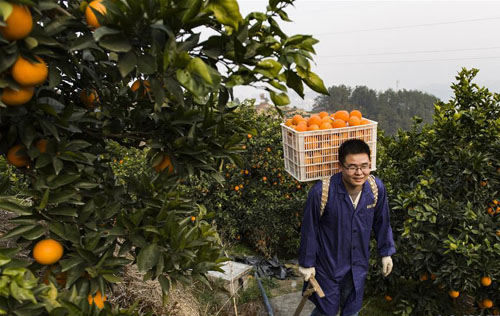 三峡库区湖北省宜昌市秭归县素有“中国脐橙之乡”的美誉。为了有效促进脐橙销售增加农民收入,秭归县借助电子商务进农村的机遇,发展电商企业3000余家。“互联网+脐橙”的销售模式使得当地脐橙年交易量突破8万吨,网上脐橙产业成为当地农民脱贫致富的主导产业。 新华社发(郑家裕 摄)