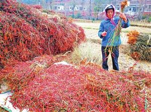 隆冬时节,会泽县乐业镇的10万亩辣椒采收完毕,大举入市。乐业辣椒以个大色红、籽多皮厚、油润光滑、辣味纯正、香味独特而闻名天下,深受消费者青睐。