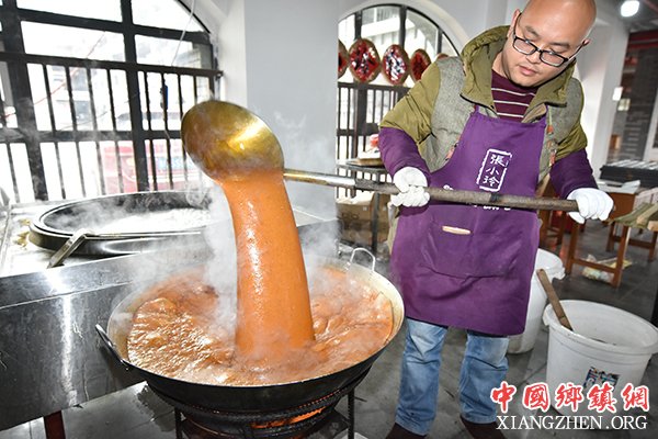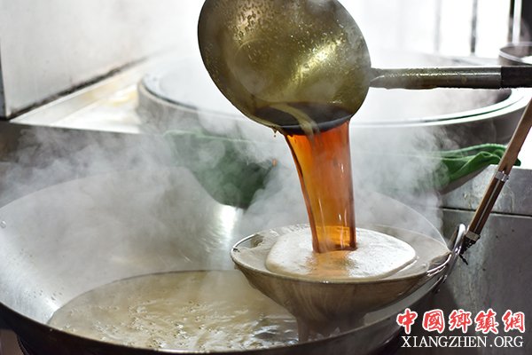 1月6日,工人在贵州省遵义市一家红糖加工作坊内熬制红糖。
