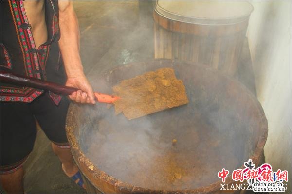 “依鲁”菜籽油古法压榨技艺是将干燥的菜籽放在以水车为动力的碾盘上,将菜籽碾碎,再减碾碎的菜籽粒放在木蒸里蒸。然后用消毒后的谷草、篾箍进行包饼。把箍包好的油菜籽饼装入木圆筒中加楔压榨,加上数根方形硬木,固定紧紧地压紧油菜籽饼,然后用木头冲杆,把园锥形木楔揳入木榨筒中,逐渐加力挤压,把菜籽油从菜籽饼中挤压出来。榨出来的菜籽油具有特有的香醇味。