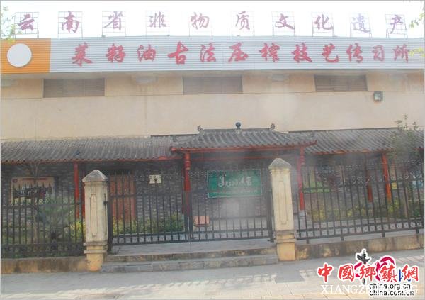 罗平县香逸油脂种植专业合作社位于罗平腊山街道云贵路旁。古法木筒榨油坊5条土法榨油生产线年生产能力压榨1400吨油菜籽。古法压榨技艺是一种古老的民间工艺,更是一项纯体力活。将干燥的菜籽放在以水车为动力的碾盘上,将菜籽碾碎,再减碾碎的菜籽粒放在木蒸里蒸。然后用消毒后的谷草、篾箍进行包饼。把竹篾箍包好的油菜籽饼装入水桶粗的木圆筒中加楔压榨,加上数根方形硬木,固定紧紧地压紧油菜籽饼,然后木头冲杆,把园锥形木楔揳入木榨筒中,逐渐加力挤压,把菜籽油从菜籽饼中挤压出来。榨出来的菜籽油具有特有的香醇味。沿用了千年来榨油工序,每一工序的器械都由手工制成,充分体现了民间手工的高超技艺。油出来后,用滤布过滤水化处理,沉淀后即得成品油。