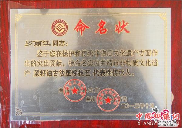 古法榨油,传统技艺,堪称民间手工榨油技艺的“活化石”,凝聚着千百年来劳动人民的辛勤与智慧。云南省罗平县的罗丽江传承古法榨油技艺,2013年10月,被命名为“曲靖市非物质文化遗产菜籽油古法压榨技艺代表性传承人”。2013年12月在罗平挂牌成立“云南省物质文化遗产菜籽油古法压榨技艺传习所”,2018年2月罗平菜油博物馆建成开展。