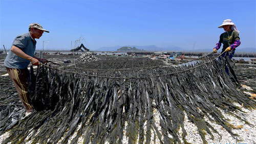 近年来,霞浦海带养殖设施技术不断更新,养殖规模和品质不断提升。2017年,霞浦县海带养殖面积达8万多亩,产量15万多吨,产值达10多亿元人民币。海带养殖成为霞浦沿海渔民增收致富的重要途径。新华社记者 魏培全 摄