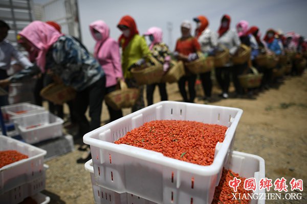 近日,在宁夏吴忠市红寺堡区百瑞源枸杞种植基地,头茬枸杞迎来采摘收获季。今年头茬枸杞采摘期比往年提前20天左右。据了解,该基地地处红寺堡生态移民区,占地3000亩,采摘季节每天有数百名当地移民在田间采摘劳作。
