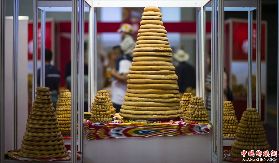 在第七届乌鲁木齐国际食品餐饮博览会上展示的各种类型的馕(2017年5月22日摄)。
