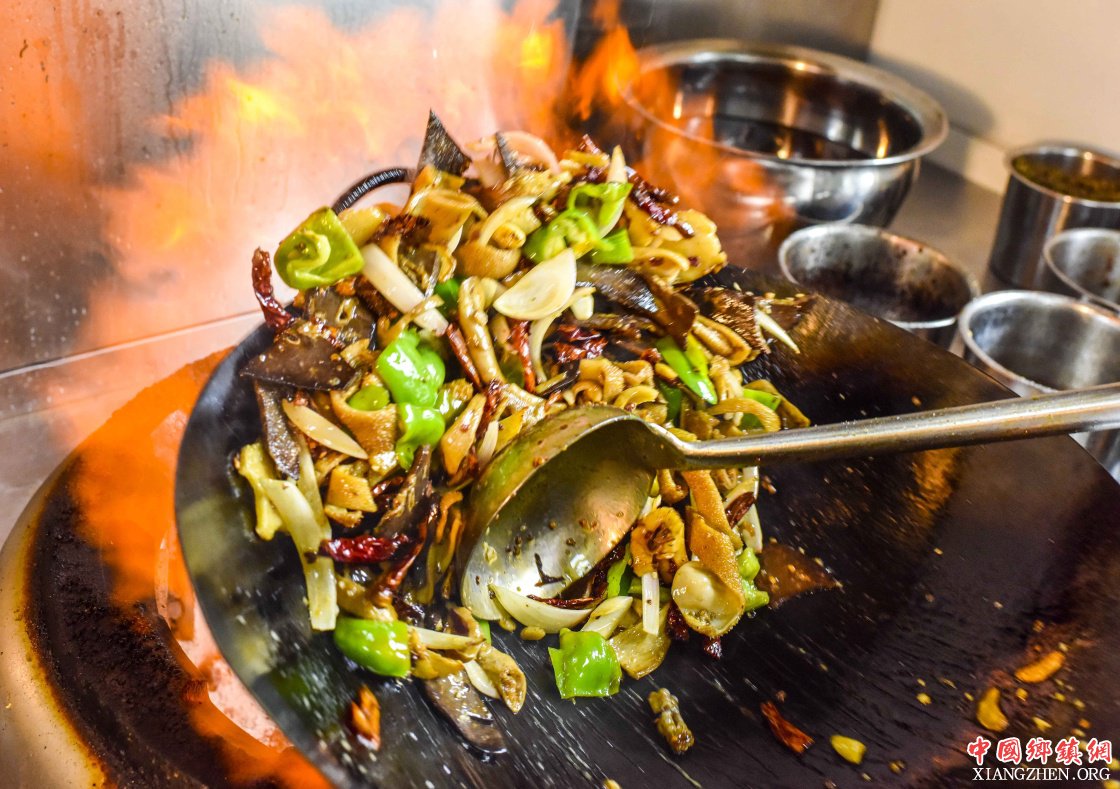 在新疆奇台县一家名叫“屯湾锅盔羊汤”的餐厅里,大厨正在制作“爆炒羊杂”(7月25日摄)。