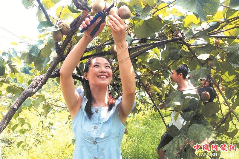 8月7日,游客在泸州市纳溪区天仙镇牟观村的“朱雕现代农业科技示范园”里采摘猕猴桃。(如图)