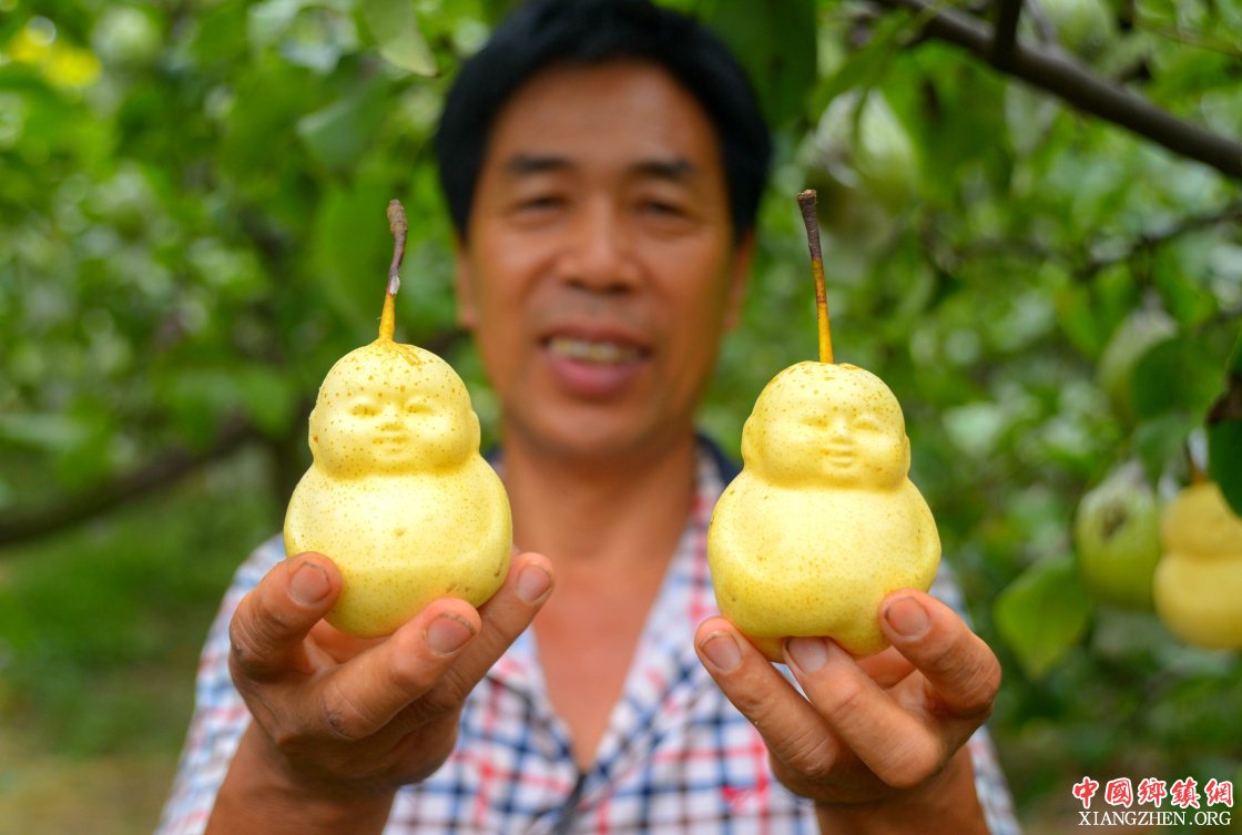 近日,河北省邯郸市魏县梁河下村村民蒿现章培育出的“人参果”造型梨迎来收获季。蒿现章研究培育艺术水果造型技术多年,他设计的水果成长塑造模具获得了专利证书。