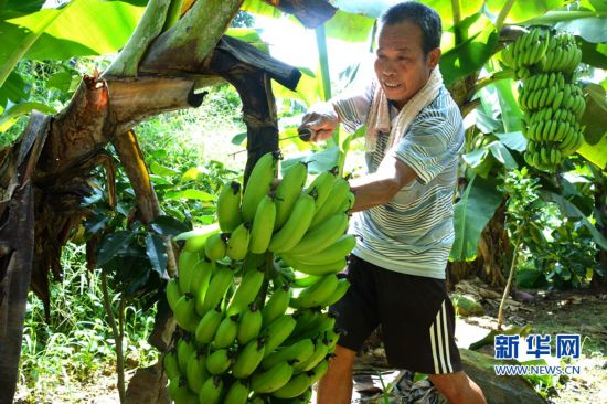 赖东生说,小米蕉亩产约3500公斤,一亩小米蕉年收入有1.5万元左右。新华网 王雄 摄