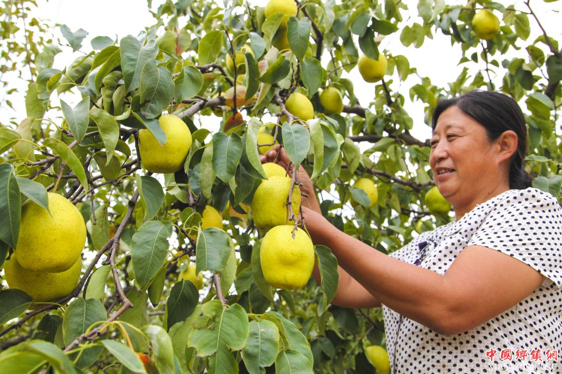 9月11日,李奉先村果农在采摘梨。