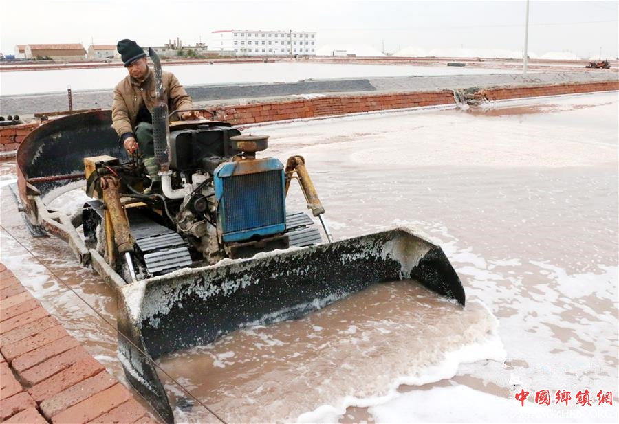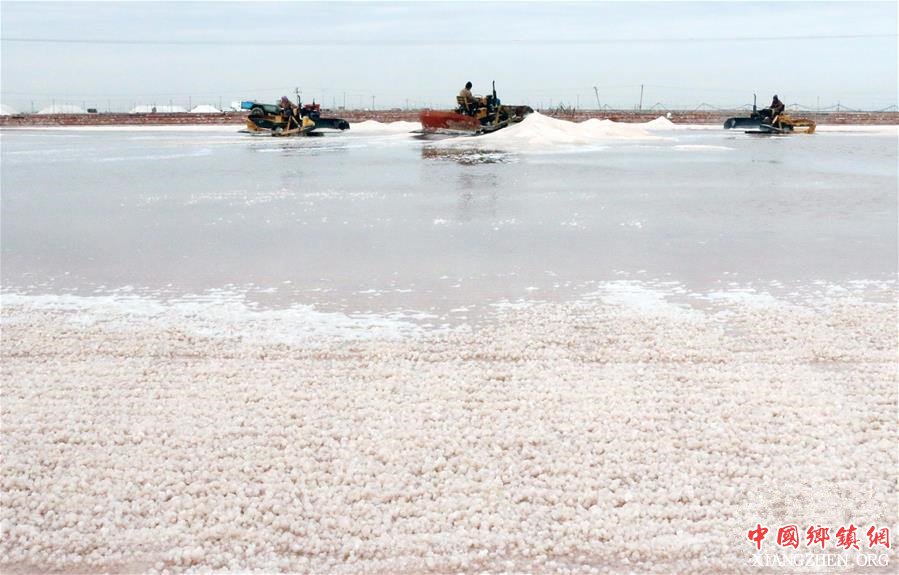 时下正值秋盐收获的时节,山东省无棣县各盐场的工作人员忙着收获秋盐。无棣县共有制盐滩田210万公亩,今年秋盐有望再获丰收,预计全年原盐产量可达150万吨。