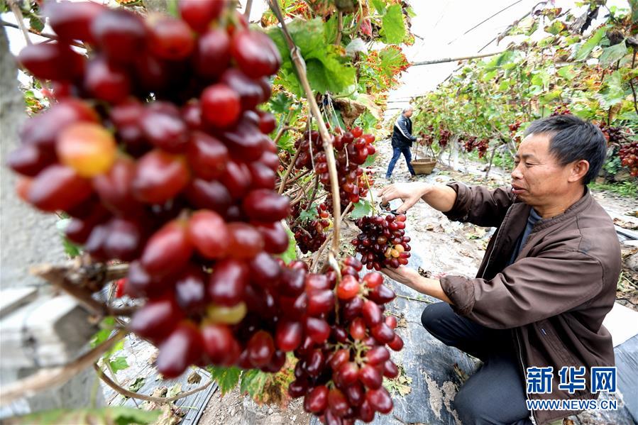 初冬时节,广西兴安县漠川乡种植的晚熟葡萄喜获丰收,错峰上市。据了解,该乡依托独特的山地气候资源种植一万多亩不同时间段成熟的葡萄,实行错峰上市,除供应本地市场外,还销往欧美及东盟等地,成为带动当地农民脱贫致富增收的支柱产业。