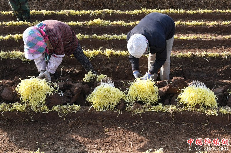 12月19日,在兰州市西固区西柳沟街道张家大坪村,农民在收获韭黄。