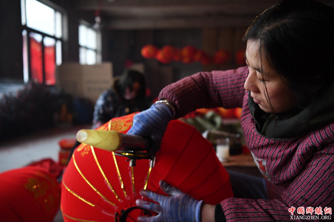 春节临近,山西省运城市稷山县稷峰镇杨赵村的灯笼日渐俏销,村民们加紧赶制灯笼,供应节日市场。