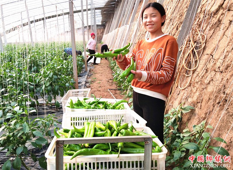 (中国乡镇网山东讯)1月2日,在山东省郯城县马头镇陈高册村日光温室大棚内,这位名叫王文雪的女孩高兴地拿着刚刚采摘下荷兰富贵椒说:四个大辣椒得有一斤重。