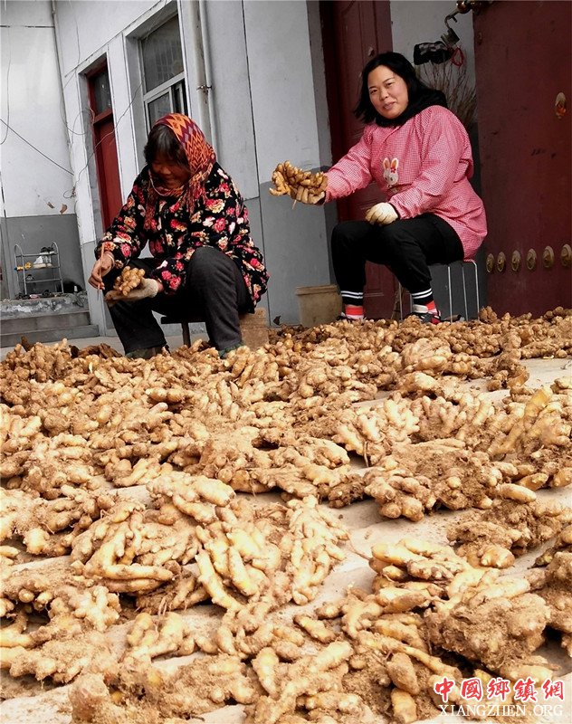 (中国乡镇网山东讯)1月19日,山东省郯城县马头镇花园新村菜农张学军的庭院门口整晾晒黄姜,一家人正在忙碌着清理泥土,脸上透出了幸福劲。